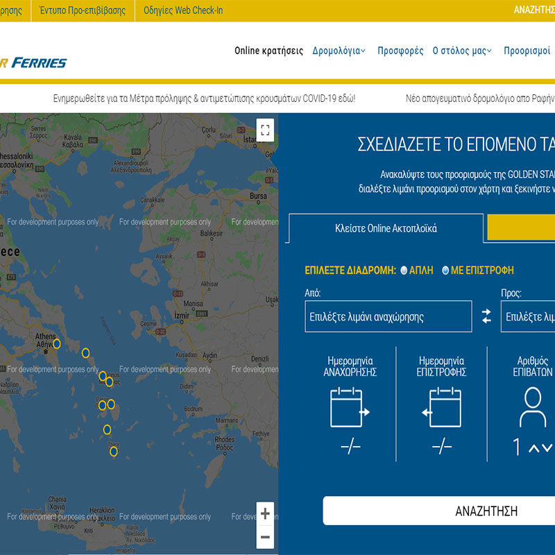 Η μηχανή κρατήσεών μας υποστηρίζει και βοηθά τους πελάτες της ZasFerries να βρίσκουν όλες τις ακτοπλοϊκές συνδέσεις εξαιρετικά γρήγορα και εύκολα.